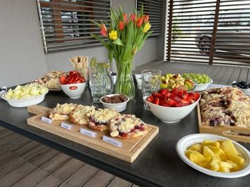 Počasí nám opět přálo, a tak jsme přivítali jaro na terase naší firmy v Přerově. Nechybělo ovoce, limonády, skvělé koláče a čokoládové fondue.