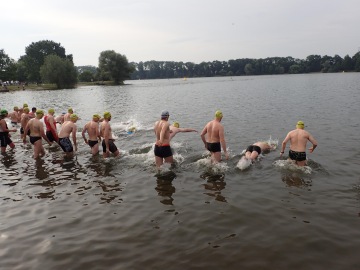 Naši jednotlivci se vnořili do vod otrokovického štěrkáče v sedm hodin ráno a nutno podotknout, že zaplavali naprosto skvěle, a to i přes zákaz neoprenů. Oba jsou ale skvělí plavci a za necelou hodinu a čtvrt už sedali na své silniční speciály, aby se vydali ukrajovat kilometry ze 180kilometrové časovky. S ostatními členy štafety jsme bedlivě sledovali, jak se jim na trati vede, a povzbuzovali, co to šlo. A dlužno podotknout, že jeli excelentně. Do depa dorazili skoro současně, moc se v něm neohřáli a vyrazili na dvaačtyřicetikilometrovou běžeckou pouť.