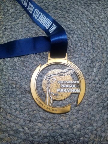 Samotný maratonský běh se konal jako vždy první květnovou neděli, tentokrát 8. 5. 2022. Členové „karátích extrémních hlav“ se však již tradičně sešli den předem. Probrali jsme naše přípravy na závod a dali si lehkou večeři s pořádným pivem. S některými jsme se viděli poprvé, a tak to bylo i setkání se vzájemným poznáváním se. V neděli ráno, po chutné snídani, jsme se vydali směr Václavské náměstí a Ovocný trh, kde bylo tento rok situováno zázemí závodu. Sluníčko a nečekaně teplé ráno dávalo předzvěst, že to dnes nebude úplně optimální počasí pro osobní rekordy. Ale to koneckonců ani není cílem, důležité je užít si atmosféru Prahy a zajímavých míst kudy se trať vine a „trochu“ si zasportovat. V devět hodin ráno to vypuklo a za tónů Smetanovy Vltavy jsme vyběhli na trať. Moje letošní příprava bohužel nebyla zcela optimální, a tak jsem na trať vyrážel s cílem závod dokončit a přežít jej bez větší úhony. Naštěstí to nebyl případ mých kamarádů v běžecké botě.
